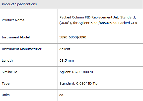 - 0.018" ID jets: 대부분의 범용 포장 컬럼 애플리케이션에 사용됩니다.