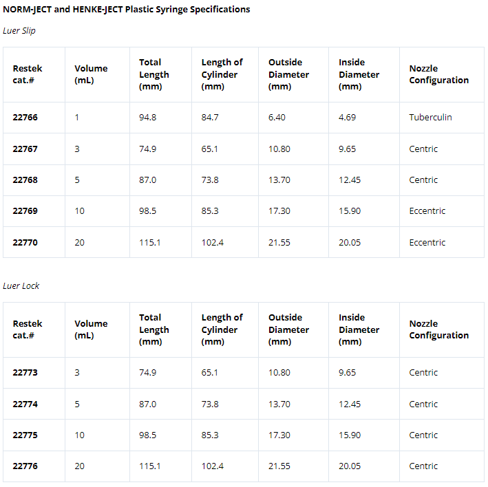 - NORM-JECT 및 HENKE-JECT 주사기는 개별적으로 멸균 스트립으로 포장되어 있습니다.