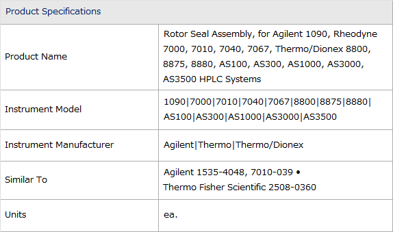 Rotor Seal Assembly, Rheodyne 7010, for TSP AS100/300/1000/3000/3500/ 8875/8880 Autosamplers