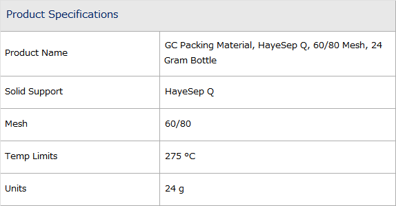 GC Packing Material HayeSep Q 60/80 one bottle - 24 grams PACKING MATERIAL ONLY