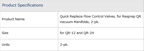 Quick Replace flow control valves for Resprep QR Vacuum Manifolds